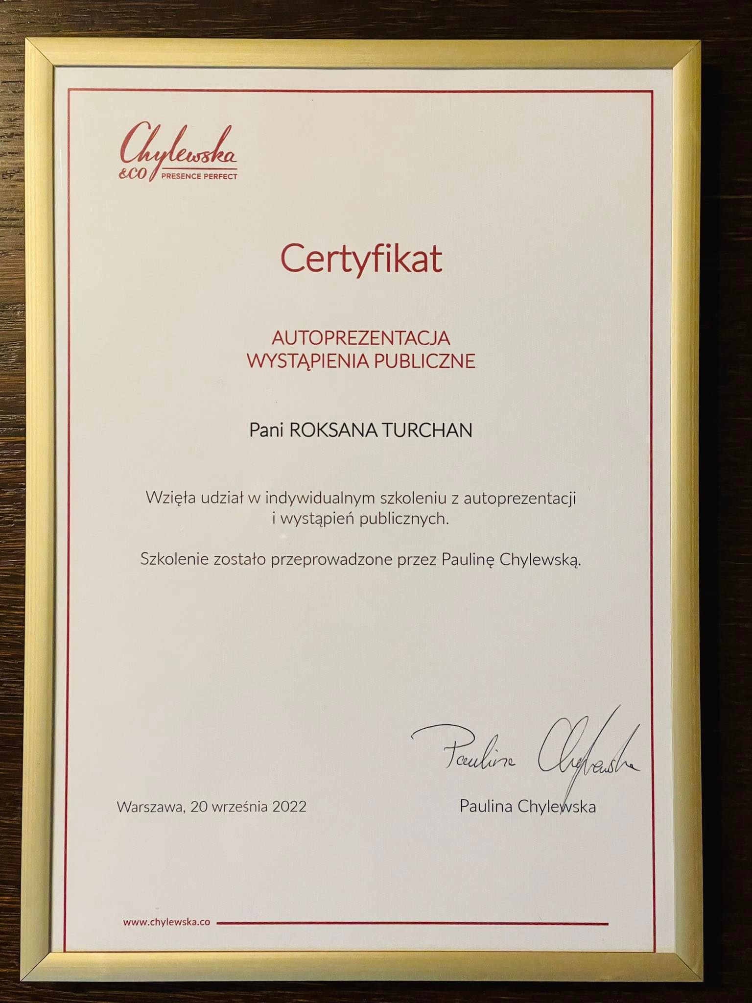 W 2022 r. wzięła udział w indywidualnym szkoleniu z wystąpień publicznych przeznaczonym dla osób wykonujących zawód adwokata przeprowadzonym przez Paulinę Chylewską, prezenterkę telewizyjną oraz dziennikarkę z wieloletnim doświadczeniem. Uczestnictwo w szkoleniu pozwoliło jej jeszcze lepiej reprezentować Państwa interesy przed Sądami oraz innymi instytucjami.